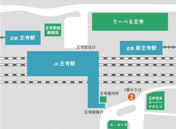 ➊ JR王寺駅から